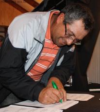 El documento fue firmado por el Presidente de Ferepa Biobío, Hugo Arancibia Z.,los presidentes de cada uno de los sindicatos de pescadores afiliados a la Mesa y el ejecutivo de Celulosa Arauco, Planta Horcones, Francisco Zamonaro.
